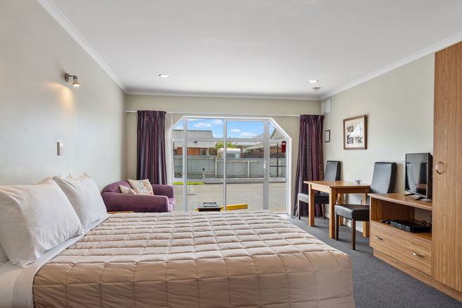 Our studio spa units are located on the ground floor with off-street parking and provide a generous space. These units have a king size bed, feature a lounge, most have full kitchen facilities, others have breakfast facilities - if you require a full kitchen please request this at time of booking. There is a private bathroom with shower, vanity and toilet. On a nice day relax outside at your own outdoor setting and watch the world go by.