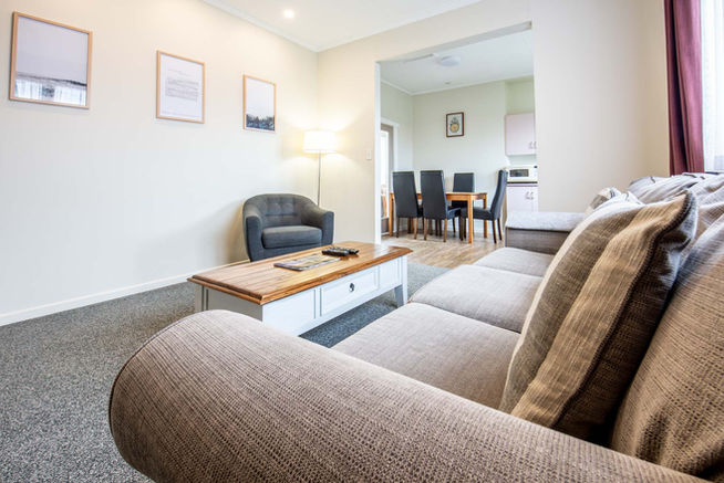 Our 2 bedroom unit with wheelchair access ramp is located on the ground floor with off-street parking. This unit is spacious with a separate lounge/dining and kitchen area for relaxing. The master bedroom has a king size bed plus single. The second bedroom has twin single bed arrangement, perfect for the family or group. A centrally located bathroom features a wet floor shower, safety rails and fold down seat, vanity and toilet.